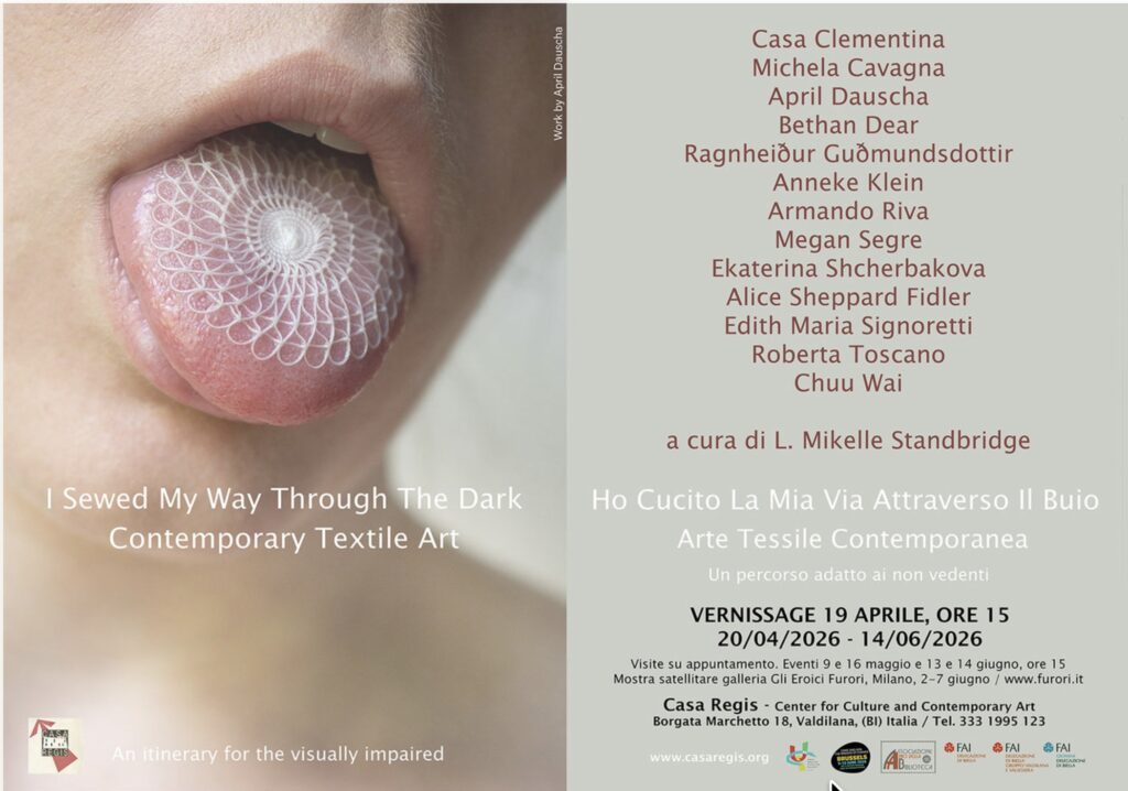 A cura di L. Mikelle Standbridge inaugura a Casa Regis “Ho Cucito La Mia Via Attraverso Il Buio” , una mostra di Arte tessile contemporanea con un percorso adatto ai non vedenti.